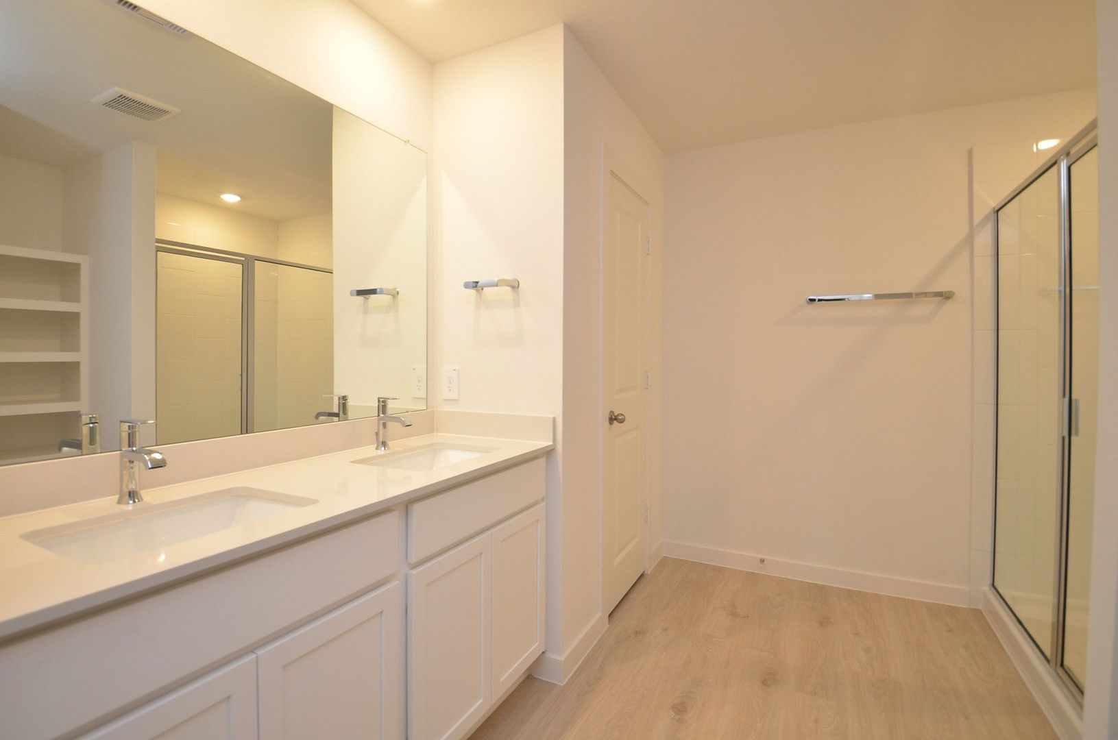 The house features five well-appointed rooms and three bathrooms. Each bedroom comes with walk-in closets offering plenty of storage space for personal belongings.